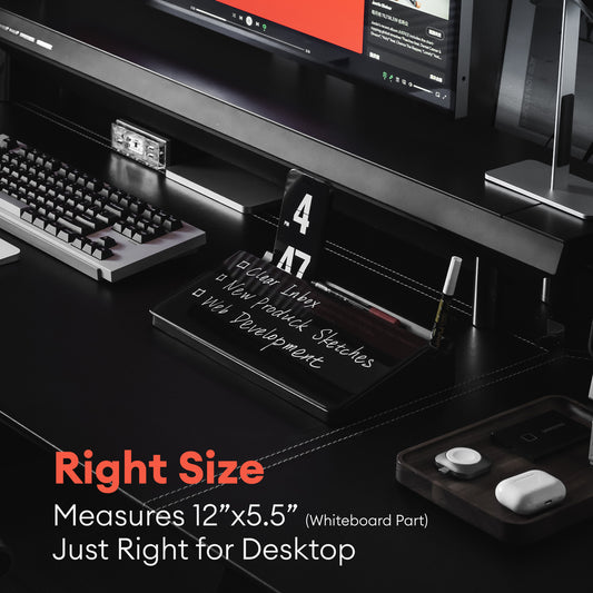 Uncover the ideal solution to optimize your workspace with the addition of this versatile desktop whiteboard, perfectly sized at 12 inches by 6.5 inches. This compact yet functional whiteboard effortlessly integrates into any desk or tabletop setting, delivering the convenience of extra writing space without being cumbersome.