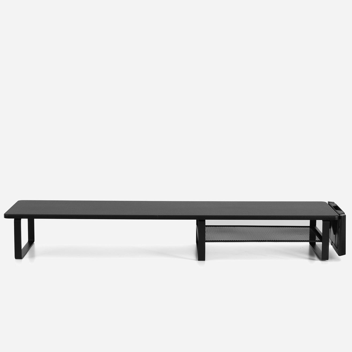 Crafted for ergonomic perfection, this 38-inch long riser provides a spacious and comfortable platform for two monitors up to 27 inches each, accompanied by an integrated shelf that enhances usability and productivity.